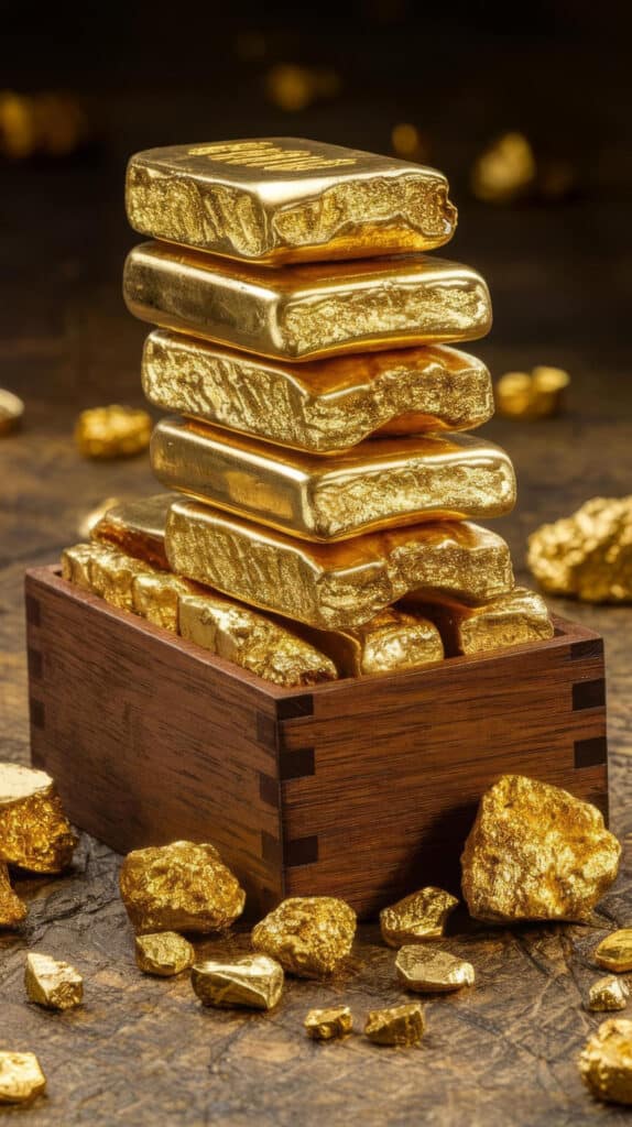 Sztabki złota i złote monety, które można skupić za gotówkę u jubilera w Legionowie